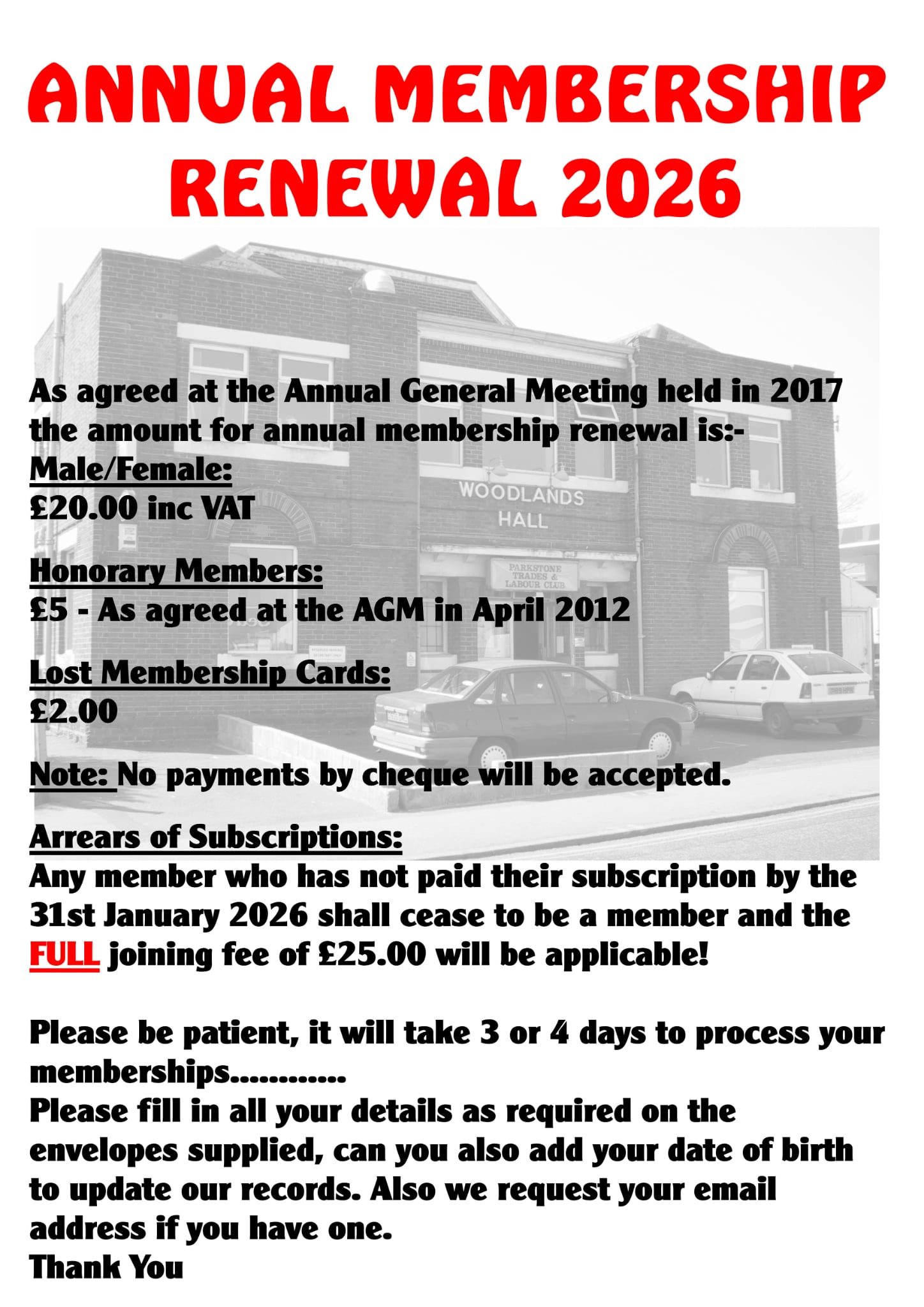 If you wish to pay byBank Transfer, please use your membership number as reference.