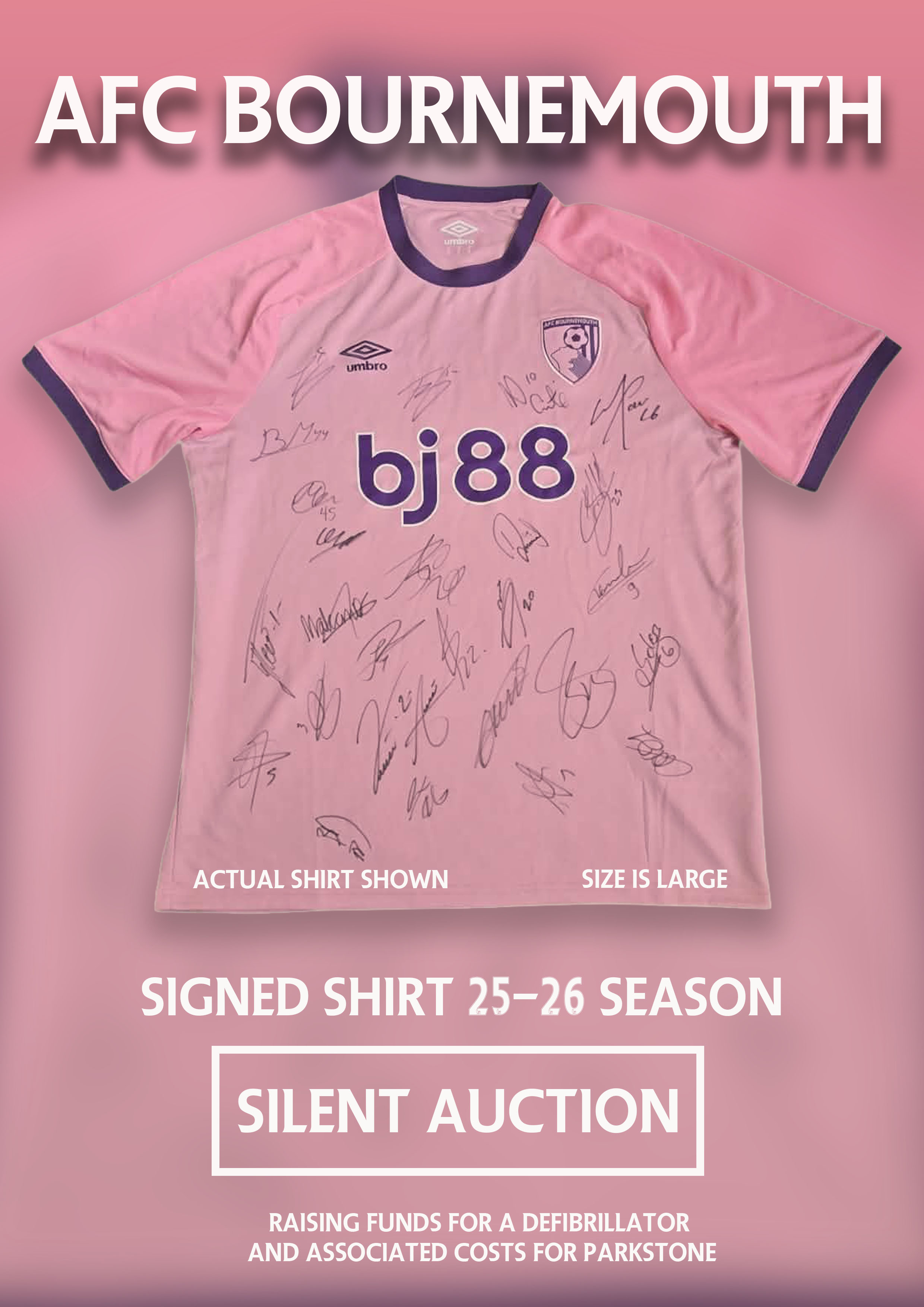 To cover the cost of the purchase and to cover associated costs ( fitting, security, etc) we are holding a silent auction on an AFCB signed shirt (2025/2026) season. If you wish to bid on this then please do so on Messenger on the PTLC facebook page or let Danny Gardiner know of the amount you wish to bid.